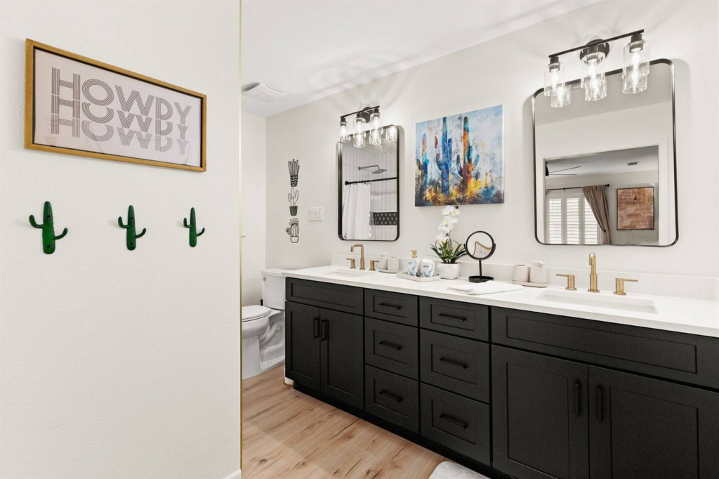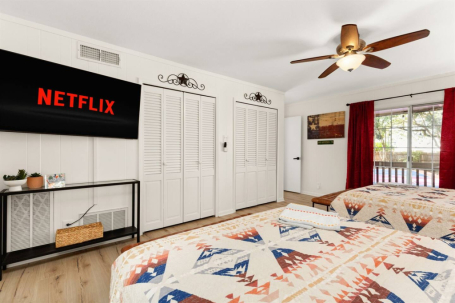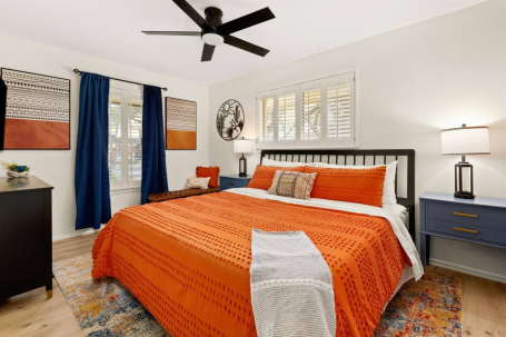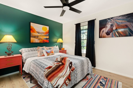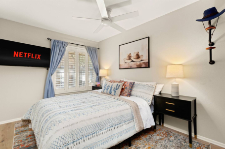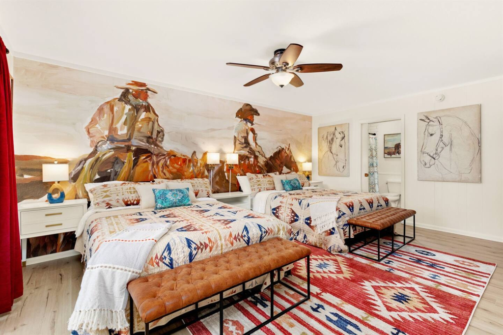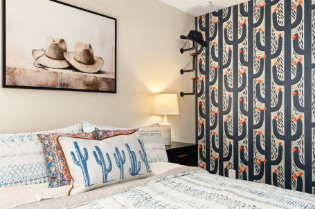 Each bedroom brings a fun, distinct Western vibe and offers a cozy retreat after a busy day. Stretch out on the comfortable beds to binge on a favorite show before getting some shut-eye. With ceiling fans to keep the temperature just right, ample storage, and plush bedding, you’ll have everything you need for a restful night.