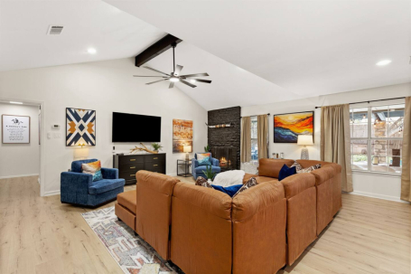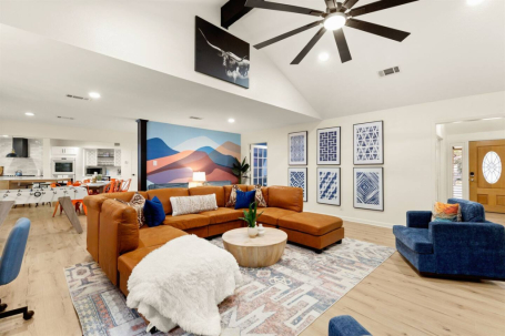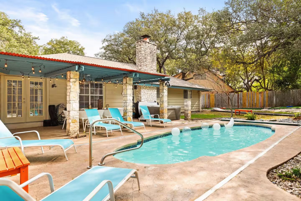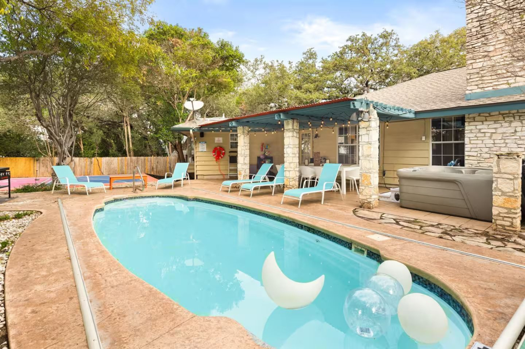 Welcome to your ultimate getaway in San Antonio! This spacious home boasts five themed bedrooms, two king beds, four queen beds, and two pull-out sofas—comfortably hosting up to 14 guests. Enjoy a fully equipped kitchen, a theater room with arcade games, a pool table, and a heated pool with a hot tub. Smart TVs, high-speed WiFi, and a pet-friendly space ensure a seamless stay. Close to top attractions, this home blends entertainment, relaxation, and Texas hospitality. Book now!