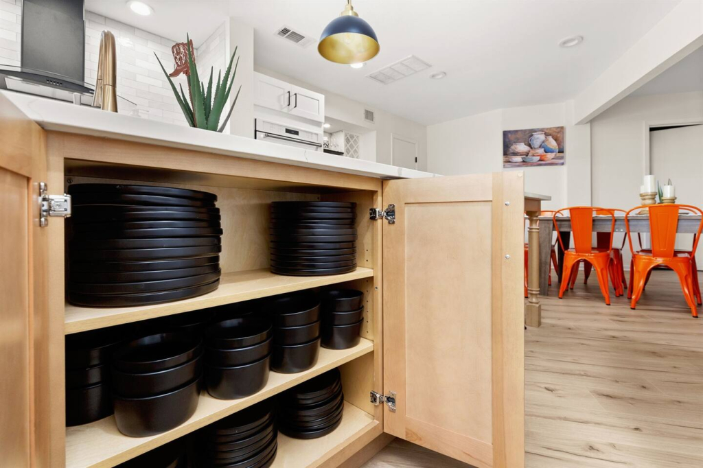 ✔ Fully stocked w/ cookware, dinnerware + spices