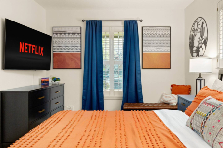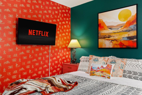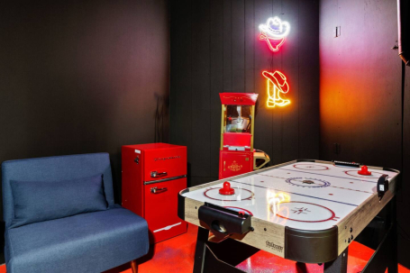 Endless entertainment awaits after a long day of exploring top attractions nearby. For a nostalgic nod to the past, head to the retro theater room to play classic Pac-Man or X-Men. Or, settle on a plump beanbag or a recliner with some fresh popcorn and enjoy a night at the movies. The vibrant game room is the perfect spot to hang out, watch some sports, and play pool.