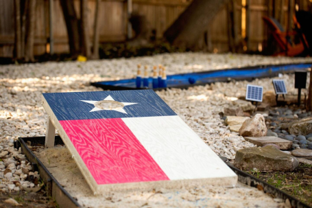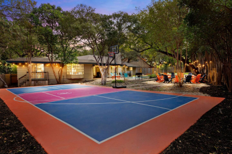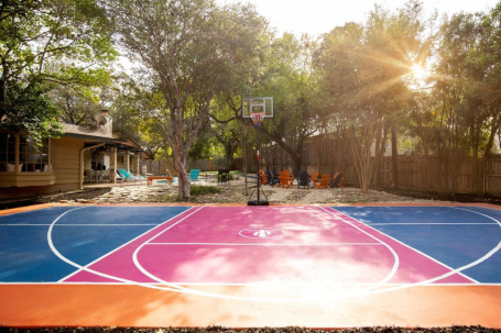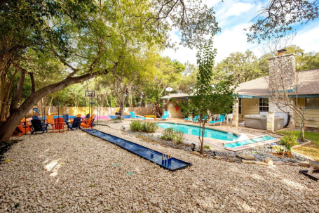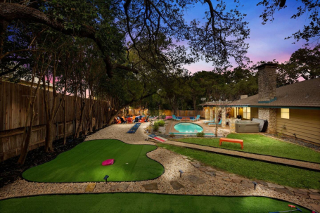 Enjoy the gorgeous Texas weather from the impressive private backyard oasis. Splash in the private pool, soak in the hot tub and enjoy long lunches in the shade. Relive your childhood, playing mini golf, bowling, or other outdoor games. Work up a sweat on the basketball court and relax, knowing your children are safe in the kids’ play area. As night draws in, roast marshmallows over the fire pit beneath twinkling string lights.