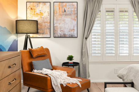 ✹ Primary Bedroom: King suite w/ reading chair + private bathroom